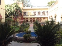The scent of jasmine was wafting on the air as we entered the garden. Garlands of roses were put around our necks and we were handed glasses of rose water and soda. Welcome to Ishwari Niwas in the city of Bundi. When the Brits left, the Maharajahs and families had to leave the palaces to the Indian government and take other residences. Ishwari Niwas is the home of the cousin of the last Maharajah of Bundi and part of it has become our guesthouse.